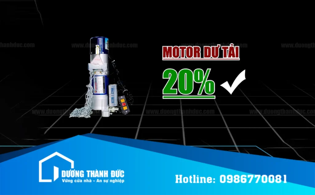 Motor nên được chọn lớn hơn tải trọng thực tế khoảng 20% để đảm bảo cửa vận hành êm, giảm áp lực hệ thống và tăng tuổi thọ thiết bị.